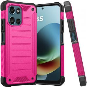 For Moto G 5G 2025/2026 / G PLAY 2026 Premium Tough Lined Design Hybrid Case Cover – Hot Pink
