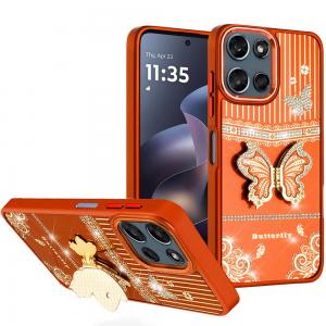 For Moto G 5G 2025/2026 / G PLAY 2026 Splendid Glitter Butterfly Design Stand with Metallic Edges Hy