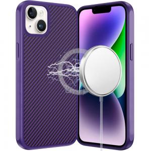 iPhone 13/14 CarbonFiber Design Magnetic Ring HQ Thick 2.0mm Hybrid Case – Dark Purple