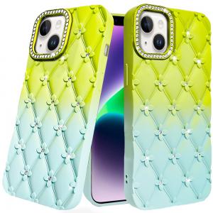 iPhone 13/14 Floral Joy Glitter Shimmer Leather Feel Thick TPU Case – Light Green/Teal