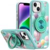 iPhone 13/14 Metal Diamond CD Pattern Design Matte Finished Hybrid with Rotational Ring [Car Mou