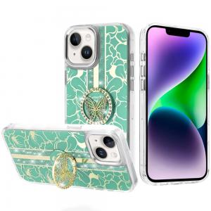 iPhone 13/14 Splendid Floral Designs with Metal Camera and Buttons with Butterfly Ring Stand Hyb