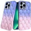 iPhone 13 Pro Floral Joy Glitter Shimmer Leather Feel Thick TPU Case – Light Pink/Light Purple