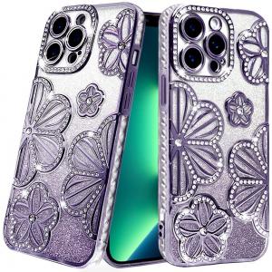iPhone 13 Pro Shimmer Glitter Floral Design Thick TPU Case Cover – Purple