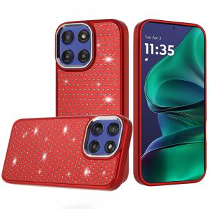 Moto G Stylus 5G 2026/2025 Beautiful Diamond Metallic Design Metal Chrome Edged Hybrid – Red