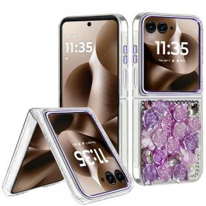 Motorola Razr Ultra 2025 Muti-Color Floral Bling Stones Ornaments Case – Purple