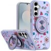 Samsung s26 Metal Diamond CD Pattern Design Matte Finished Hybrid with Rotational Ring [Car Moun