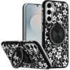 Samsung s26 Metal Diamond CD Pattern Design Matte Finished Hybrid with Rotational Ring [Car Moun