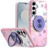 Samsung s26 Metal Diamond CD Pattern Design Matte Finished Hybrid with Rotational Ring [Car Moun