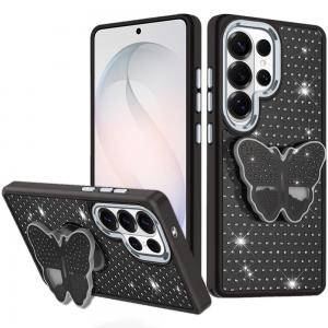 Samsung s26 Ultra Butterfly Moveable Grip Stand With Small Diamonds Meta Buttons HQ Hybrid – Bla