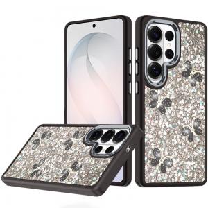Samsung s26 Ultra Cute Butterfly Ornaments Diamonds Shimmer Matching Metallic HQ Hybrid - Black